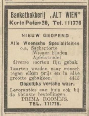 De Wiener Konditorei is opgericht door de Weense banketbakker Willy Prager in 1934. In Oostenrijk had hij het vak van banketbakker geleerd en gewerkt bij verschillende bakkerijen. In Oostenrijk voelde hij zich niet langer thuis en hij besloot om zijn geluk te beproeven in Nederland. Hij was een heuse pionier, want er waren nog niet veel horecagelegenheden in Den Haag. Een Konditorei met klassiek Oostenrijks gebak bleek een schot in de roos. De Nederlanders konden dit 'exotische' gebak wel waarderen. Prager begon onder de naam Alt Wien, maar al snel werd het de Wiener Konditorei. Het bedrijf werd gestart aan de Korte Poten 26. Na de oorlog zijn de panden nummer 24 en 26 samengevoegd tot de Konditorei die we nu kennen. Tot in de eerste oorlogsjaren woonde Prager met zijn gezin boven de winkel.